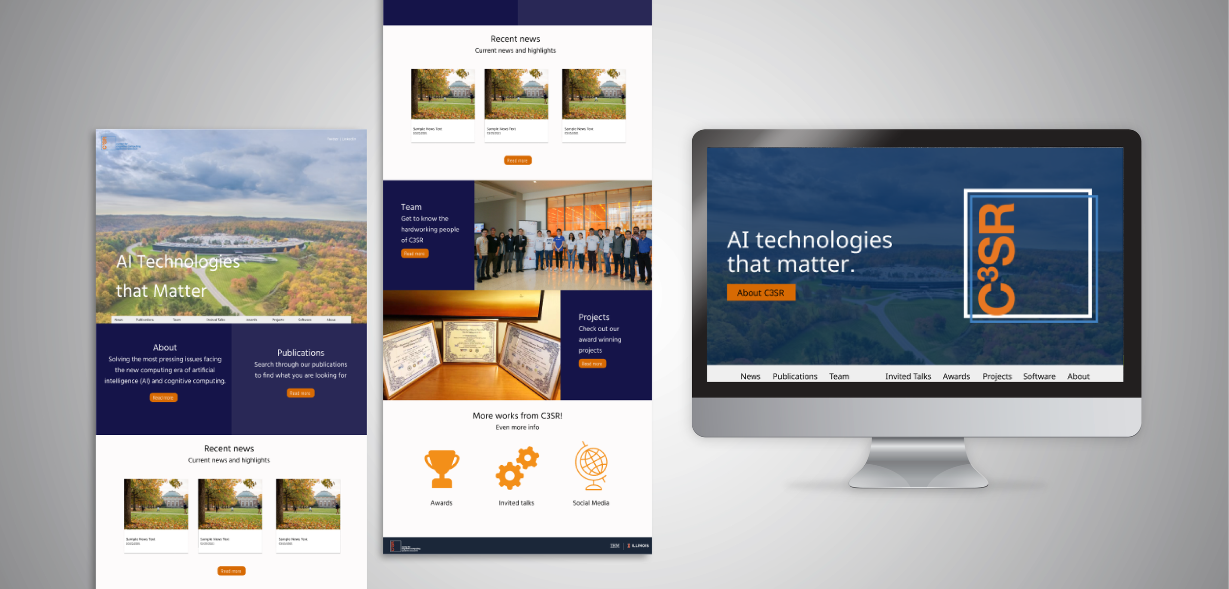 The Center for Cognitive Computing Systems Research is a collaborative effort between the University of Illinois and IBM right here on campus. My challenge was to revamp their website completely, aligning it with their fresh brand vision while ensuring a seamless user interface and experience. It was essential to preserve the original content that made them unique. To accomplish this, I teamed up with two brilliant computer science majors who converted our ideas into reality. For the wireframe, I primarily utilized Figma, exploring numerous iterations, mock-ups, and concept proposals until we settled on a final layout that hit the mark.